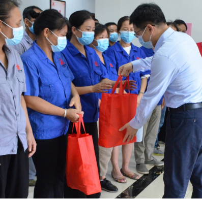 在慰問時,尹書記對我司在疫情與高溫的雙重考驗(yàn)下,維持有條不紊地生產(chǎn)作業(yè)表示肯定,同時希望我司能夠繼續(xù)保持安全生產(chǎn)的良好勢頭,并叮囑一線員工作業(yè)時要注意身體,確保身心健康,時刻注意作業(yè)安全。當(dāng)尹書記將夏季防暑降溫物品一一送到每位一線員工手中時,員工十分感動,整個現(xiàn)場更是響起熱烈的掌聲。